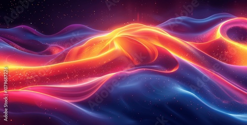 4K Abstract Neon Fluid Gradient Background with Retro and Futuristic Elements