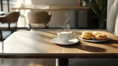 modern, date, scene, 2, steaming, sleek, polished, table, next, plate, buttery, pastry, minimalist, decor, clean, line, neutral, tone, stylish, urban, ambience