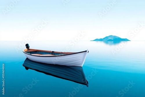 cartoon, illustration, dinghy, lake, calm, peaceful, white, background