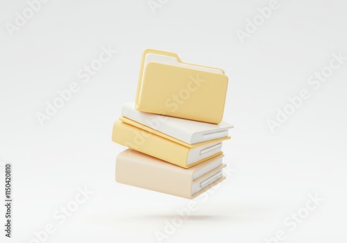 A 3D illustration of multiple stacked file folders in pastel yellow and white