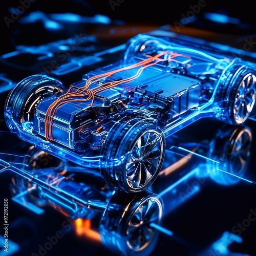 a 3d mesh of a car showing the wiring network inside,generative ai