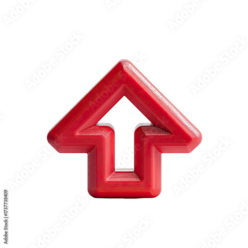 arrow, up, red, three-dimensional, render, geometric, bold, rounded, design, symbol, indicator, direction, guidance, navigation, ascent, progress, growth, increase, elevation, climb, upward, pointing, sharp, corner, glossy, shiny, vibrant, colours, hue, shade, tint, digital, graphic, illustration, icon, buttons, interface, element, vector, shape, form, object, signs, marker, pointer, path, route, journey, destination