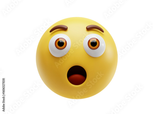 shocked, surprised, amazed, astonished, wow, omg, expression, emotion, face, yellow, round, icon, symbol, digital, art, three-dimensional, rendering, illustration, graphic, design, communication, social, media, cyberspace, online, texting, chat, message, feeling