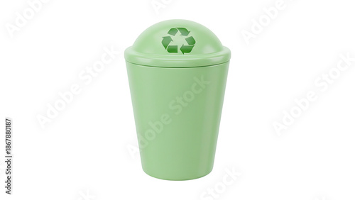 A 3D rendering of a green recycling bin with a lid and a recycling symbol on top