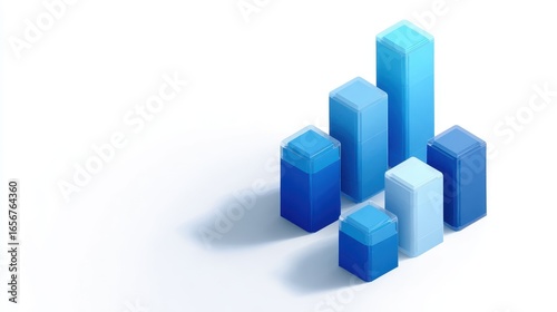 A 3D stacked column chart clipart, data element, isometric render, blue gradient, isolated on white background