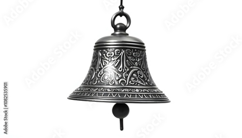 a antique silver bell with intricate engravings, isolated on a bright white background create with ai