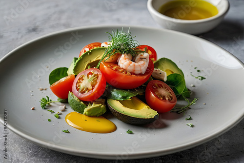 avocado, avocado, tomatoes, salad, seafood, seafood salad, comfort food, food photography, side dish