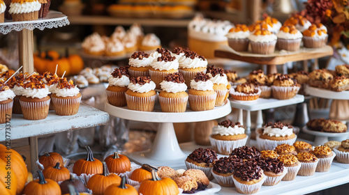 bakery, display, pumpkin, spice, muffin, cake, cookie, pie, festive, fall, vibe, aroma, favor, warmth, creativity, tradition, sweetness, texture, variety, indulgence, comfort, celebration, harvest, colours, richness, charme, nostalgia, craftsmanship, balance, harmony, inspiration, delight, satisfaction, abundance, seasonal, transformation, connection, joy, simplicity, elegance, anticipation, togetherness, gratitude, beauty
