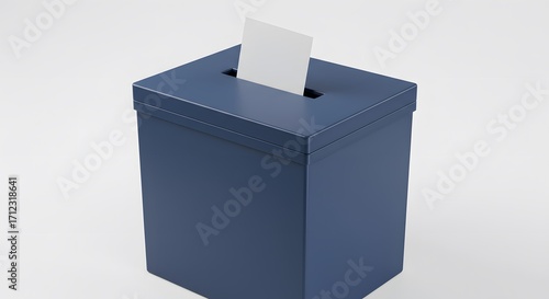 A ballot box with a single vote, symbolizing the essence of democracy and the right to vote. The box is a solid blue, and the ballot stands out from the box