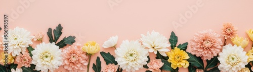 A beautiful arrangement of colorful flowers against a soft pink background, perfect for spring themes and floral decor.