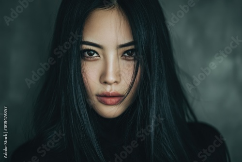 A beautiful asian girl with black hair.