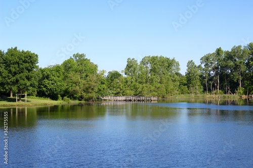 A beautiful clear sunny day at the lake in the countryside.