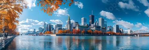 A beautiful panoramic view of the vibrant city of Montreal, Canada, showcasing its modern skyscrapers, historical landmarks, and bustling city life. Perfect for travel and tourism promotions.
