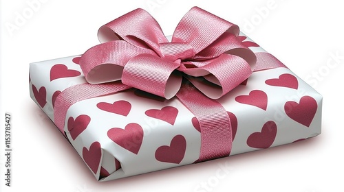 A beautifully wrapped gift box adorned with a pink bow and heart patterns, perfect for expressing love on special occasions.