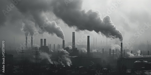 A black and white photo capturing the smoke emanating from a factory. This image can be used to depict industrial pollution or the impact of manufacturing on the environment