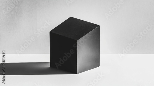 cube, white, black, surface, shadow, striking, upright, flat, footed, geometric, contrast, plain, background, depth, composition, form, light, white background