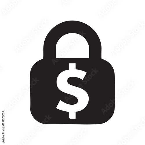 A black padlock icon with a white dollar sign displayed on its front surface high quality