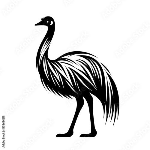 emu, ostrich, silhouette, black, bird, vector, minimalist, isolated, transparent, stroke, outline, large, flightless, tall, leg, feather, wildlife, nature, strong, running, wild, natural, animal, contour, shape, clean, simple, art, design, graphic, flat, abstract, bold, creature, symbol, minimal, vignetting, australian, exotic, swift, graceful