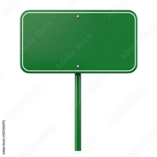 A blank green rectangular road sign on a sturdy pole, perfect for conveying information or direction. isolated on transparent background.