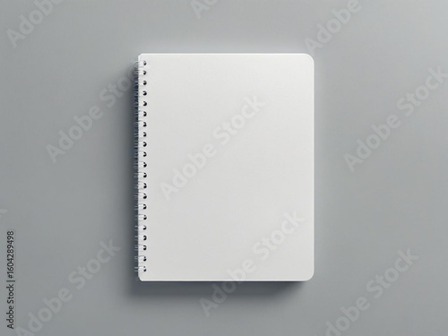 A blank spiral notebook mockup with pencil placed diagonally on soft light blue background, flatlay composition, minimal stationery branding scene.