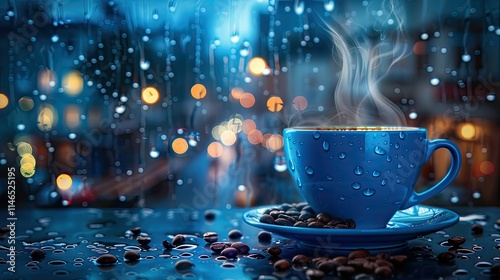 A blue cup of coffee