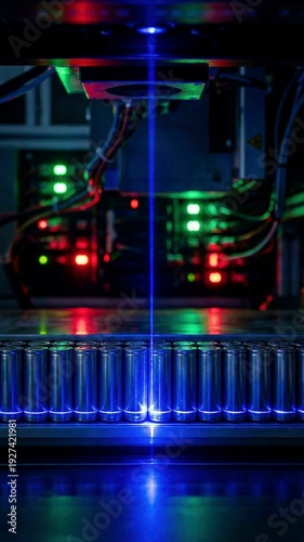battery, laser, technology, energy, cell, testing, innovation, electric, futuristic, science, industrial, blue light, electronic, machinery, precision, renewable energy, power, research, development, manufacturing, automation, industry, future, high technology, quality control, diagnostic, efficient, advanced, modern, engineering, storage, module, power source, production, circuit, artificial intelligence, accumulator, anode, cathode, measurement, inspection