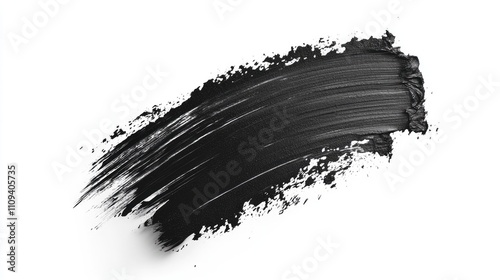 A bold black paint stroke on a clean white background, showcasing vibrant texture and contrast.