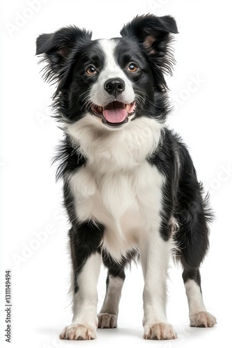 A Border Collie standing proudly, isolate on white background, showcasing its intelligence and playful nature.