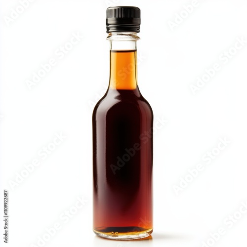 bottle, aged, sherry, vinegar, drizzle, isolated, white, background, realism, art, style, flat, photo, closeup, focusing, amber, colours, resolution, additional, condiment