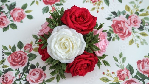 bouquet, rose, floral, red, white, pink, green leaf, arranged, flower, background, elegant, romantic, decorative, spring, summer, natural, vibrant, fresh, botanical, colourful, garden, lush, detailed, artistic, home decor, gift, celebration, timeless, seasonal, harmonious, aesthetic, arrangement, no people