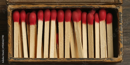 a box of matches with red heads