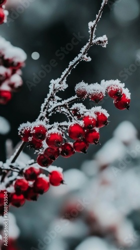 A branch of red berries covered in snow