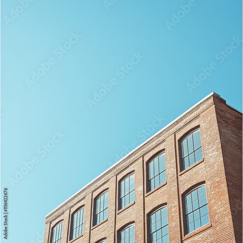 A brick building captured against a bright blue sky offers a vibrant backdrop, suitable for real estate marketing, architecture discussions, or urban development projects,