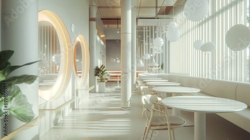modern, cafes, natural, light, minimalist, decor, bright, interior, airy, space, white, furniture, green, accent, refreshing, atmosphere, inviting, clean, line, contemporary, relaxing, workspace, design, stylish, open, layout, fresh, cosy, seating, tranquil, sleek, trendy, ambience, elegant, style, urban, comfortable, chic, element