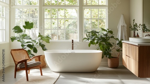 bright, bathroom, modern, bathtub, natural, light, sunlight, lush, plant, wooden, peaceful, relax, harmony, minimalist, decor, interior, design, window, chair, green, calm, fresh, space, white, clean, leaf, nature, indoor, luxury, soft, comfort, view, garden, smooth, serenity, tranquil, neat, minimal, spa, hygiene, aroma, home, place, rest, elegant, rural, quiet