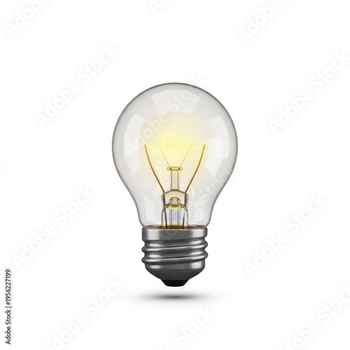 A bright glowing light bulb against a plain white background