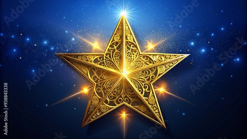 A bright, golden five-pointed star shines against a dark blue background, its intricate details and subtle glow evoking a sense of magic and wonder.