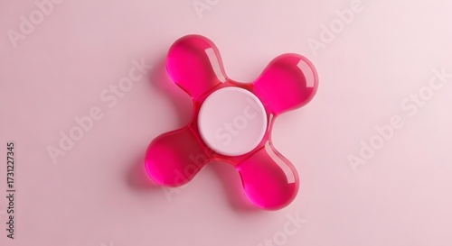 fidget, spinner, toy, pink, bright, plastic, glossy, shiny, smooth, 4, lobe, center, circle, pastel, soft, shadow, play, game, stress, relief, anxiety, sharpened, adult, children, children, fun, entertainment, contraption, object, item, modern, simple, minimalist, clean, studio, lighting, overhead, top, view, flat, lay, concept, trend