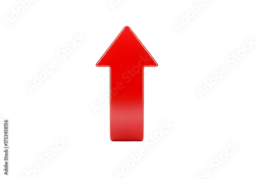 A bright red glossy arrow pointing upwards isolated on transparent background