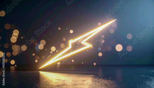 A bright yellow lightning bolt is shown in a blurry, glowing effect. Concept of energy and excitement, as if the lightning bolt is about to strike. The blurred effect adds to the dynamic