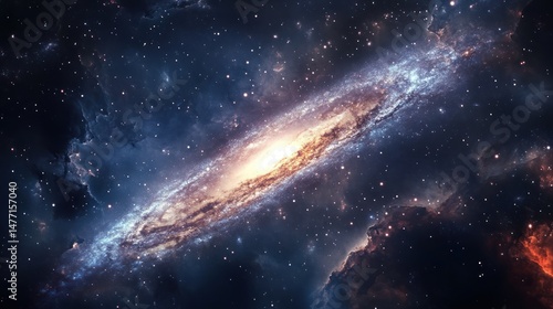A brilliant galaxy surrounded by cosmic dust and numerous stars