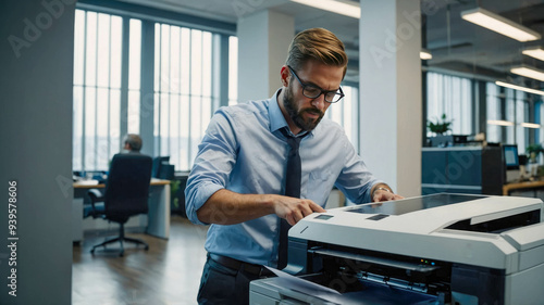 person, technology, office, equipment, indoor, one person, press, professional, device, male, printer, man, paper, young, adult, black-and-white, businesswoman, buttons, company, control, document, bankruptcy, female, frustration, image, job, large, laser, machine, messy, occupation, panel, paperwork, photo, print, printing, problem, production, profession, scan, serious, sharing, standing, start, stress, tablet, technician