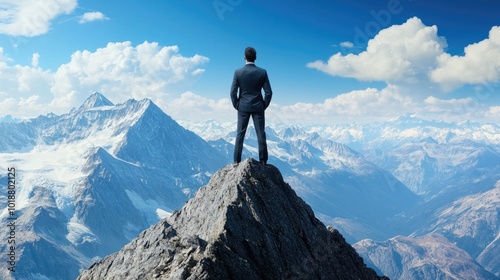 man, mountain, top, suit, business, peak, hike, capital, financial, success, achievement, aspiration, pinnacle, ridge, craggy, rocky, landscape, nature, adventure, travel, wanderlust, exploration, vacation, holiday, pursuit, goal, dream