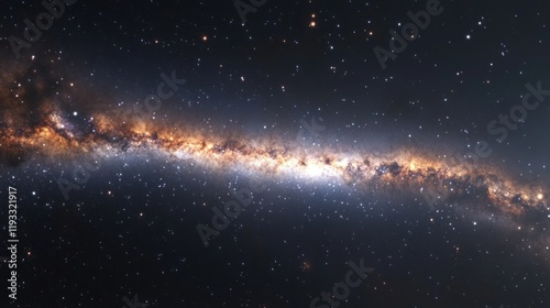 A captivating 3D rendering of the Milky Way with bright star clusters and cosmic dust illuminated