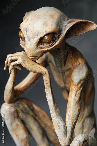 A captivating alien figure reflecting deep thought and curiosity.