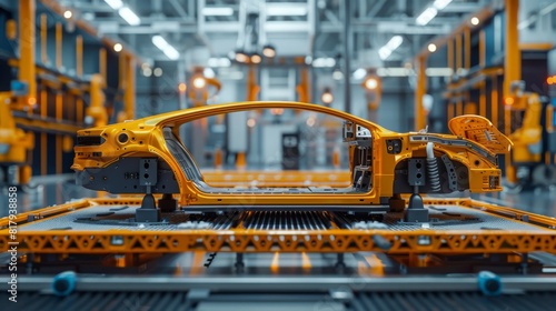 A car is being built in a factory