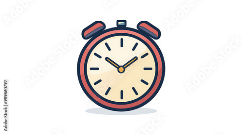 A cartoon alarm clock with a white face and red outline.
