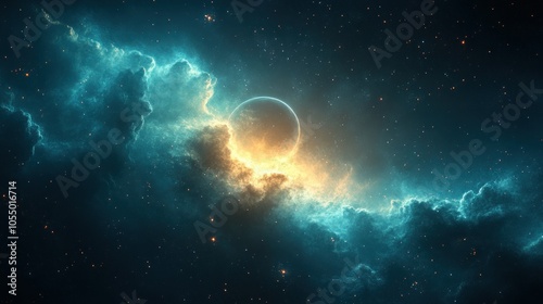 space, universe, nebula, celestial, body, star, galaxy, star, sky, night, dark, cosmic, dust, gas, light, glow, bright, blue, teal, yellow, orange, vibrant, swirling, distant, foreground, background, fantasy, dreamy, abstract, art, digital, painting, illustration, science, astronomy, exploration, mystery, wonder, spectacular, magnificent, awe