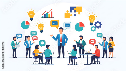 a central character acting as a mentor for a diverse team in collaboration within a workspace environment for business success.