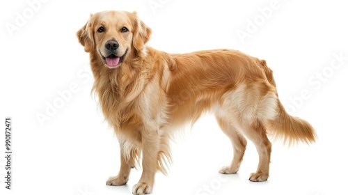 A charming dog standing on a pristine white background. The dog has an endearing expression and a confident stance. Its fur might be soft and shiny. The white background makes the dog stand out promin